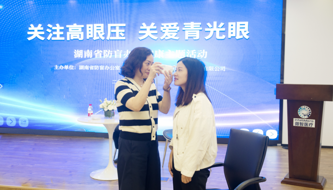 6月4日,湖南省防盲办公室联合微智医疗器械有限公司举办爱眼日主题活动,呼吁全社会改变眼健康认知,对眼压进行常态化监测,做到对眼压异常、青光眼的早检测、早发现、早治疗。